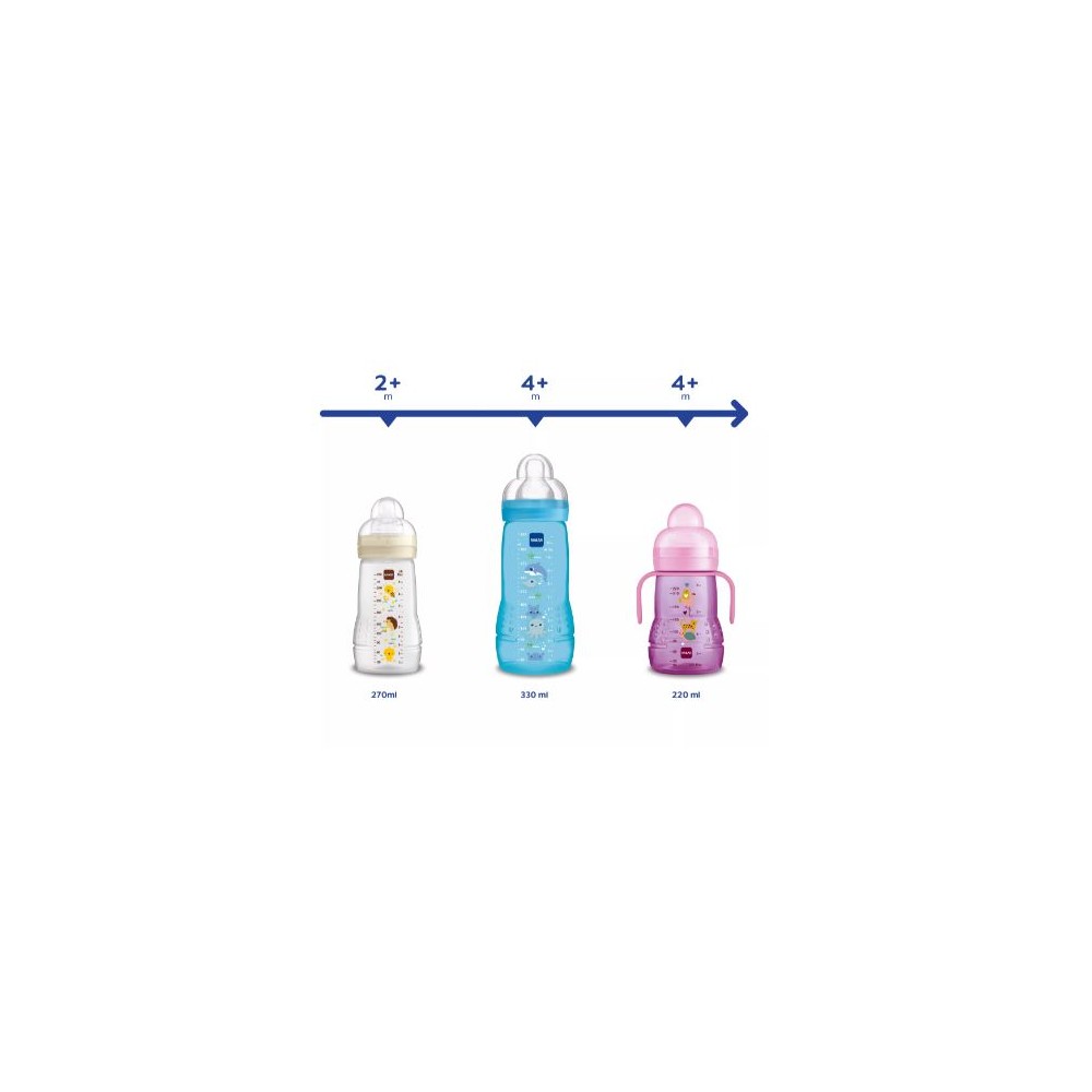 Este producto cumple con los requisitos de la norma EN 14350:2020. Las tetinas se adaptan a todos los biberones de cuello ancho MAM y al vaso Trainer+.