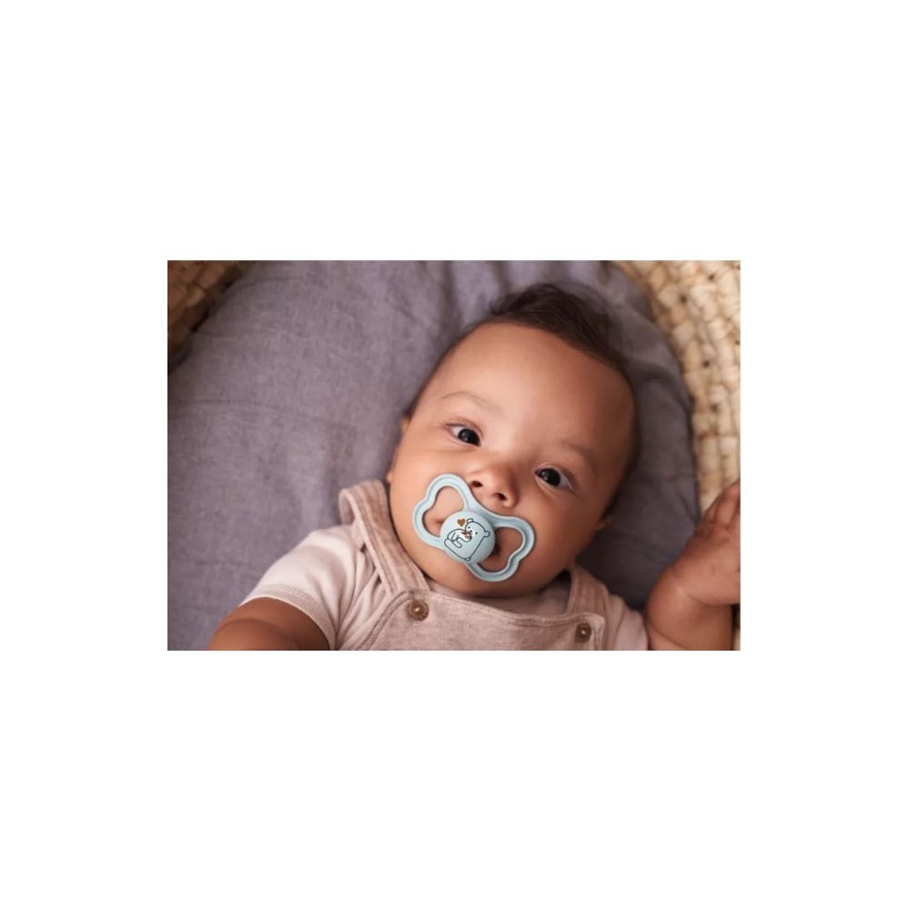 La tetina extrasuave y flexible permite un cierre más natural de la boca. Los dientes tienen más espacio para crecer con normalidad y el riesgo de desalineación se reduce.