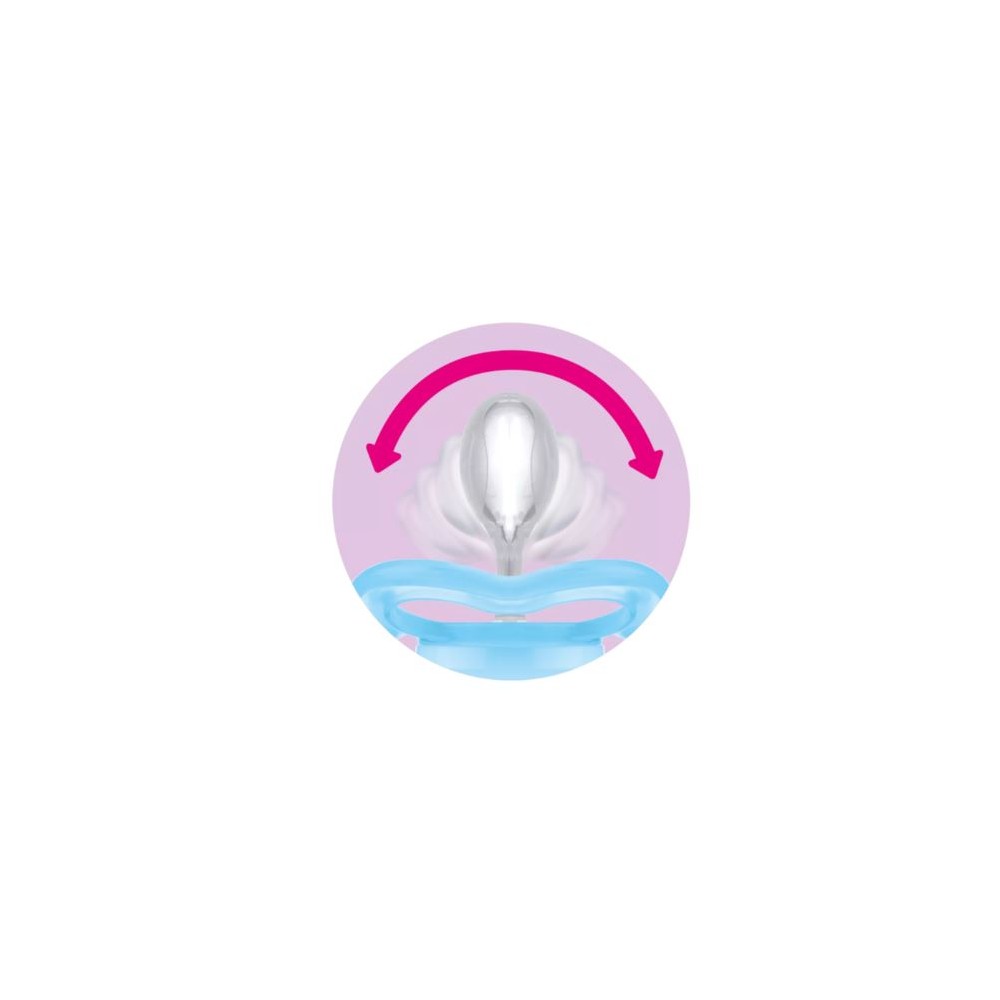 La tetina extrasuave y flexible permite un cierre más natural de la boca. Los dientes tienen más espacio para crecer con normalidad y el riesgo de desalineación se reduce.